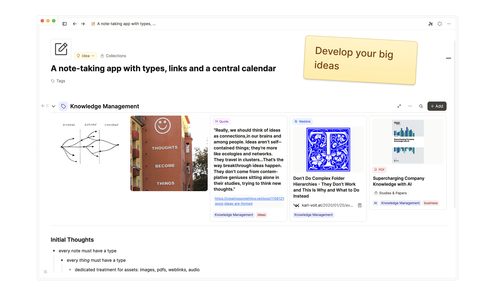 You never know where that next big idea will come from. Pull all your inspiration into Capacities and trust that you will find things right when you need them.