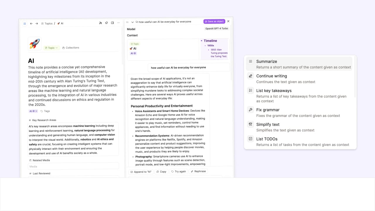A deeper look at the AI Chat in Capacities, including commands, context and more.