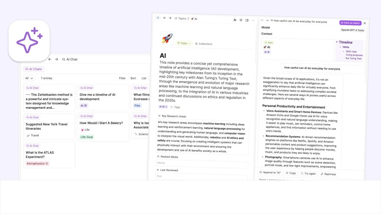 An overview of the 3 places you can use AI in Capacities right now, plus the useful feature of saving your chats for later.