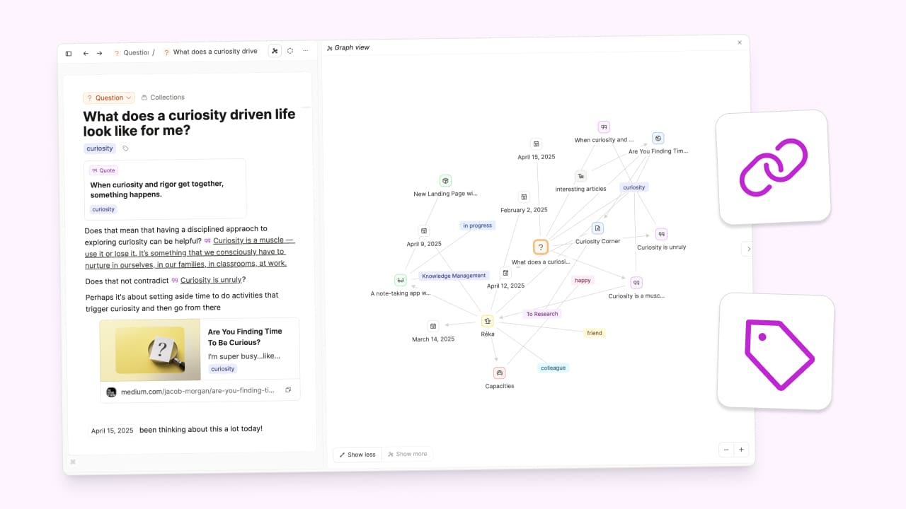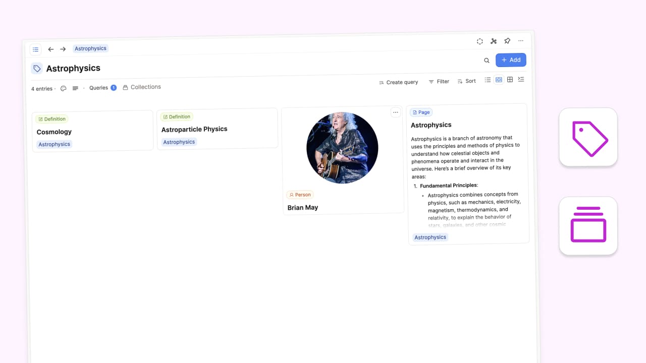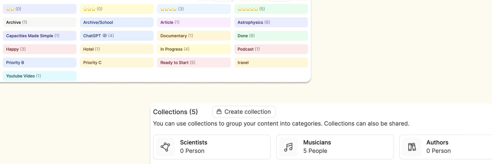 Tags and collections are two key organizational features of Capacities, so it's important to know how to use them.