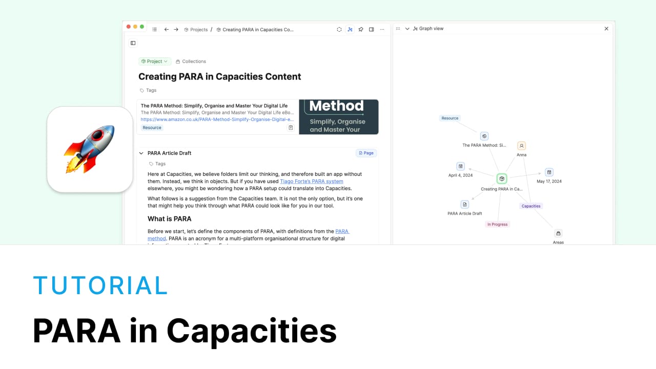Tiago Forte's PARA system (https://www.buildingasecondbrain.com/...) is one of the most well known concepts in the knowledge management space, and today we're showing you one way to set up a PARA system in Capacities. We talk a lot about tags and linking as a more intuitive alternative to a folder structure.